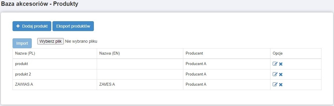 Zarządzanie produktami znajduje się w panelu AMDIN -> ustawienia modułów -> baza akcesoriów -> produkty.
