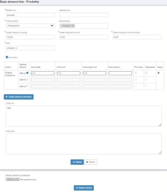 Zapis dodawanego/ edytowanego produktu odbywa się poprzez przycisk „Zapisz”