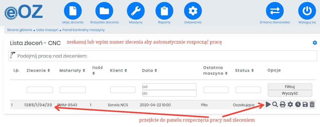- wystarczy zeskanować kod zlecenia z karty produkcji