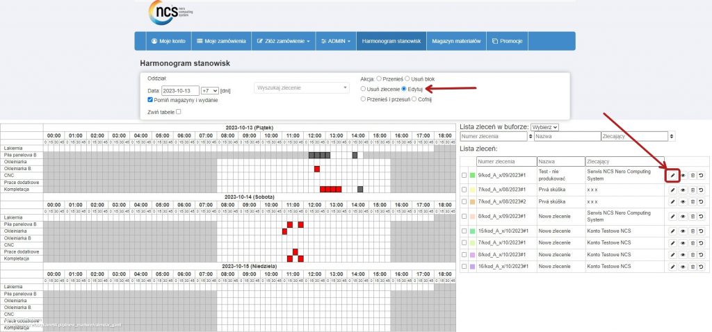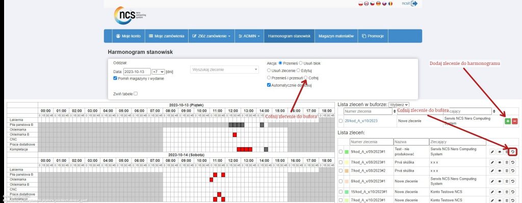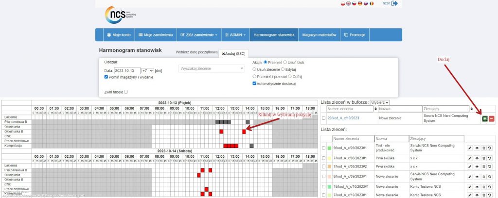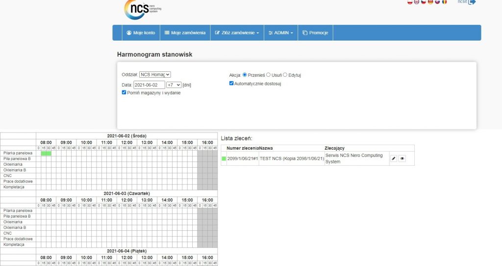 - Automatyczne dodawanie zleceń – podczas wysyłki do realizacji zlecenie zostaje automatycznie wstawia do harmonogramu w najbliższym możliwym terminie