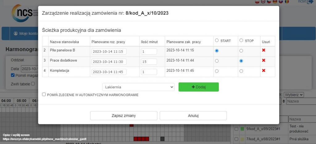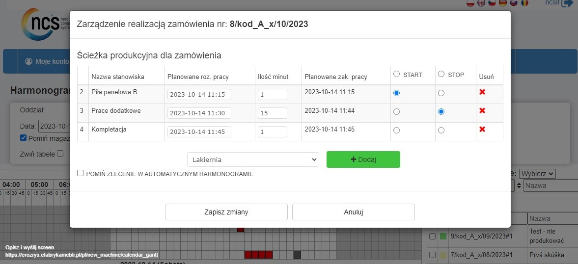 - Wyświetlenie całej ścieżki zlecenia – wszystkich stanowisk pracy do których jest przypisane