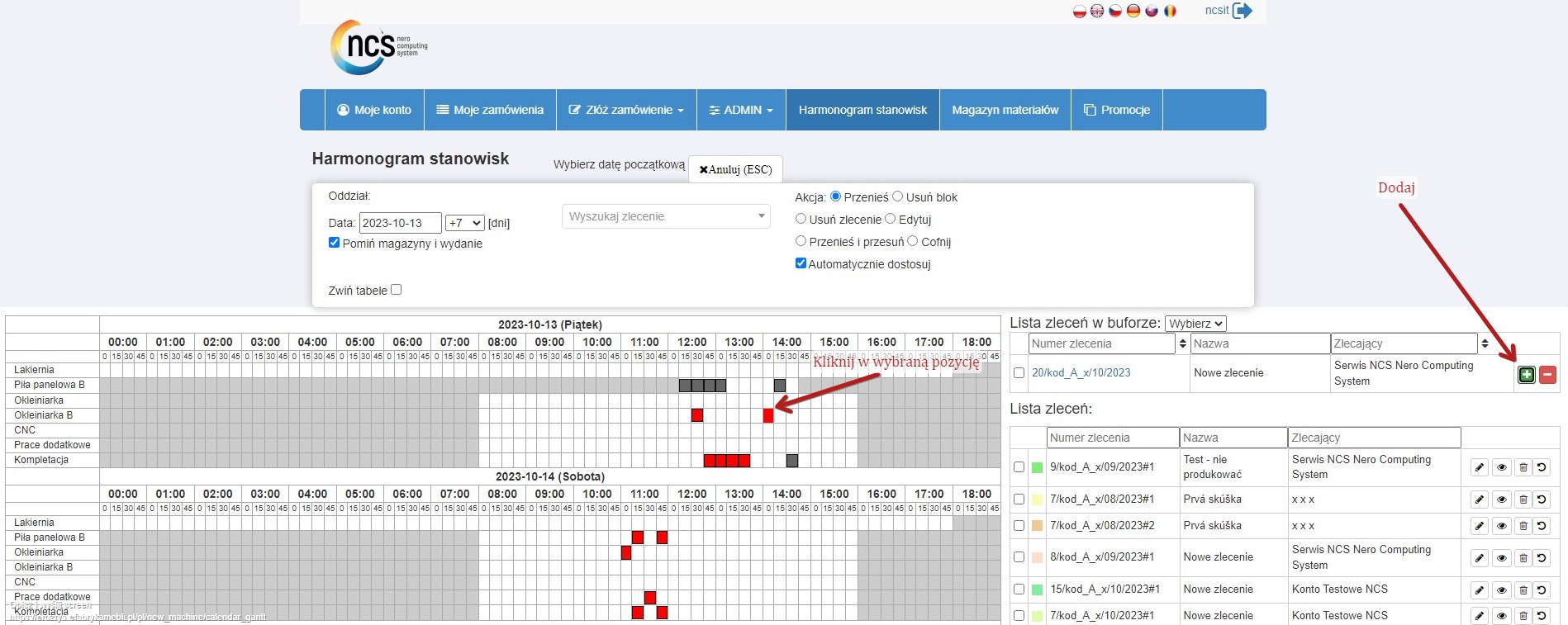 Aby dodać zlecenie do harmonogramu z wykorzystaniem bufora należy:
