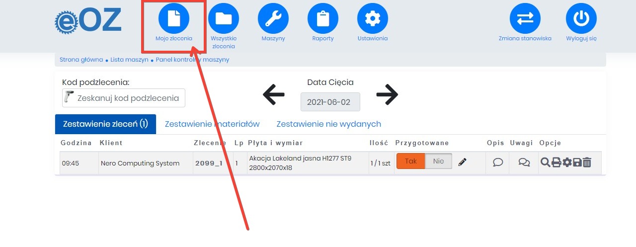 - Wybierz odpowiednie stanowisko pracy – maszynę [Zrzut ekranu]