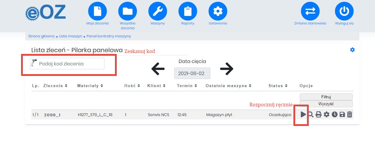 - Na liście zleceń rozpocznij pracę nad zleceniem [Zrzut ekranu]
