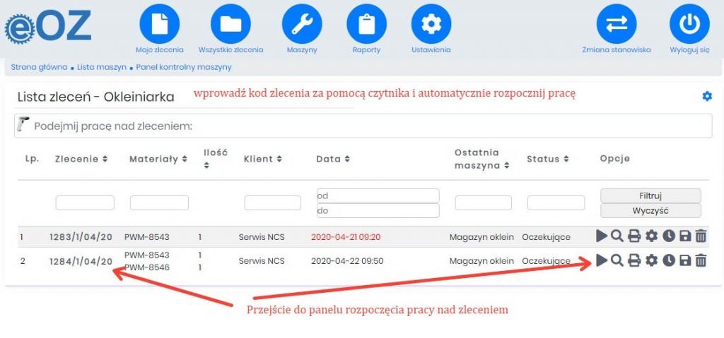 - wystarczy zeskanować kod zlecenia z karty produkcji