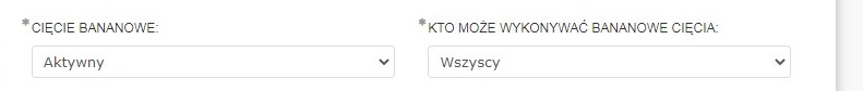 Aby włączyć funkcję cięć rozprężających (bananowych) należy wejść do Menu Admin -> Ustawienia -> Zarządzanie modułami a następnie dla pozycji „Cięcia bananowe” ustawić na aktywny. Dodatkowo w pozycji „Kto może wykonywać bananowe cięcia” należy wybrać zakres uprawnień.