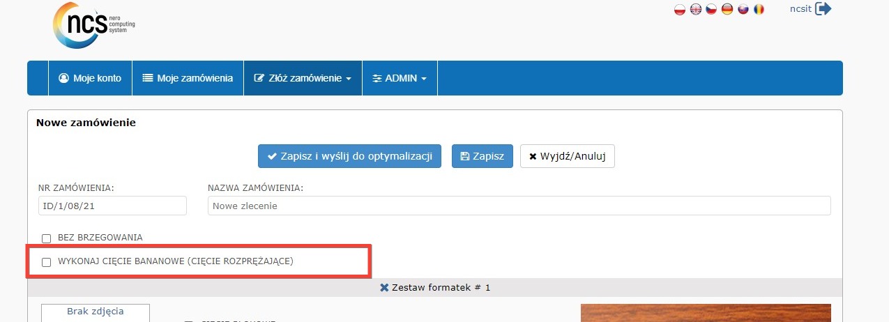 Po powrocie optymalizacji, w panelu „moje zamówienia” administratora można ściągnąć plik optymalizacyjny z bananowym cięciem.