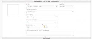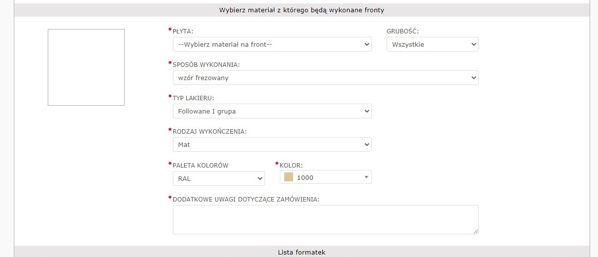 Następnie poniżej dostępny jest formularz służący do uzupełnienia listy zamawianych formatek.