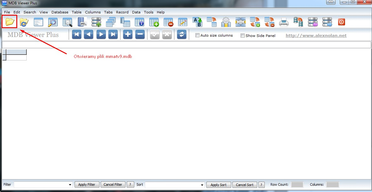 Nastepnie należy otworzyć MDB Viewer Plus i załadować plik mmatv9.mdb