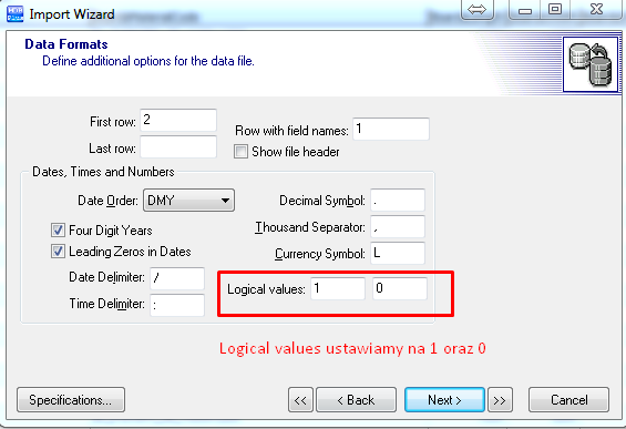 W następnym oknie należy wprowadzić wartości zgodnie z grafiką poniżej: