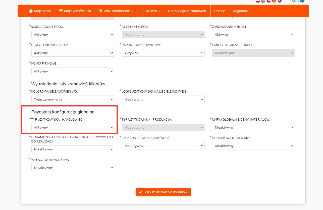 - Widoczność zamówień przez handlowca – wszystkie lub tylko przypisanych użytkowników