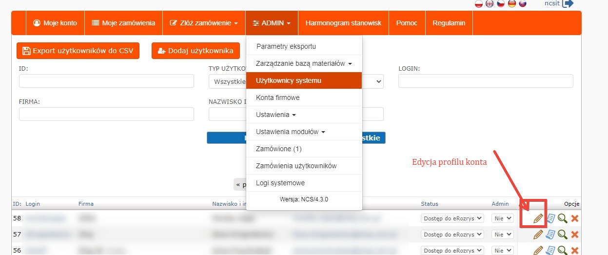 - Dostęp do notatek wewnętrznych zamówień – tak / nie