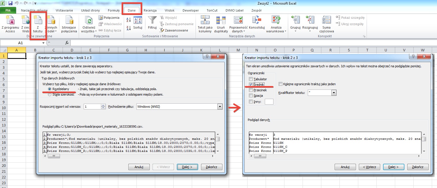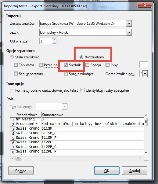 Podczas jego wczytywania upewnij się, że masz zaznaczoną wyłącznie opcję rozdzielenie średnikiem