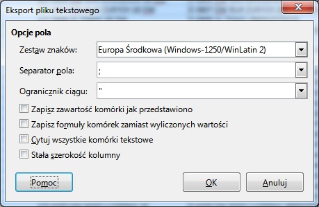 – Zestaw znaków – Europa Środkowa (Windows-1250/Latin2)