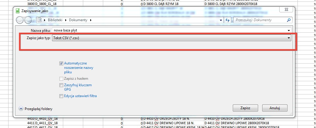 Plik .csv możemy edytować dowolnym edytorem kalkulacyjnym (np. Excel).