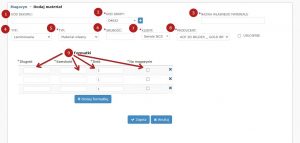 *Długość, *Szerokość, *Ilość – wprowadza się wymiary dodawanego materiału,