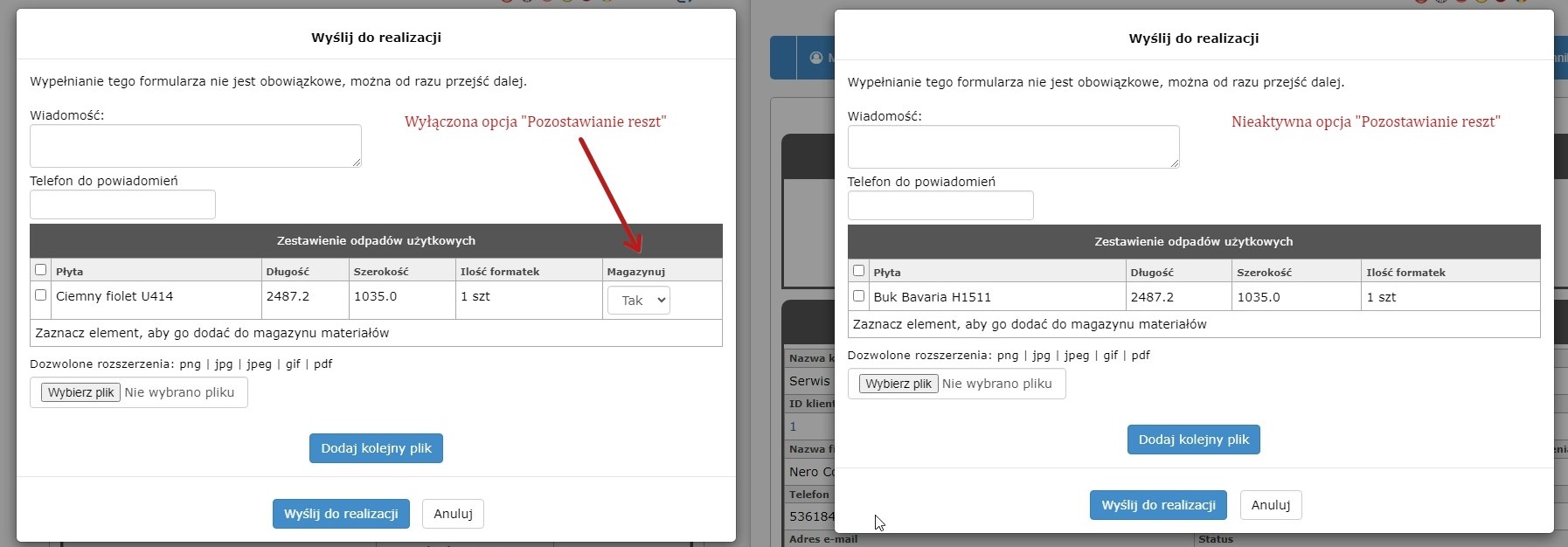 (4) Pozostawienie reszt – nadaje użytkownikowi lub grupie użytkowników możliwość pozostawienia na magazynie odpadów użytkowych (przypisanych do Klienta), które powstaną po zrealizowanym zamówieniu w hurtowni.