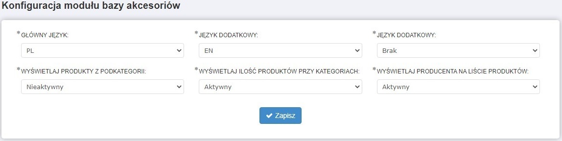 Konfiguracja modułu znajduje się w panelu ADMIN -> ustawienia modułu -> Baza akcesoriów -> konfiguracja