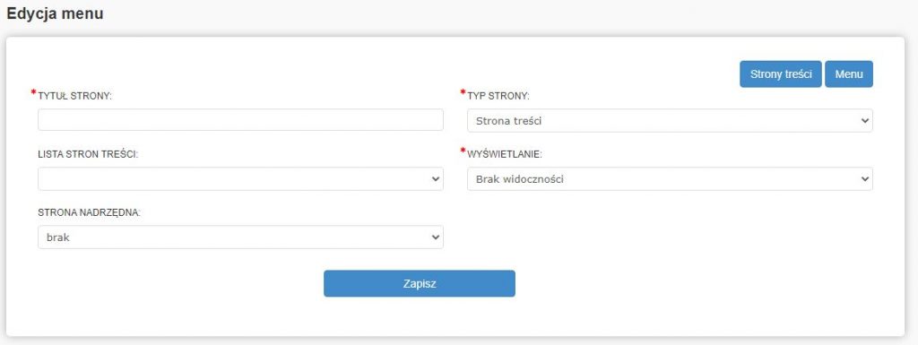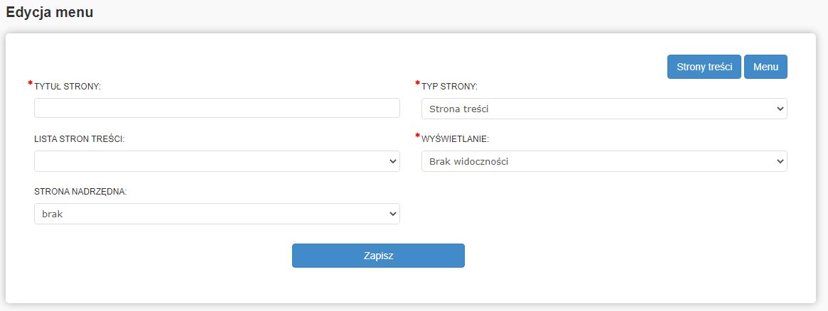 Edytor składa się z dwóch części: Strony treści oraz Menu.