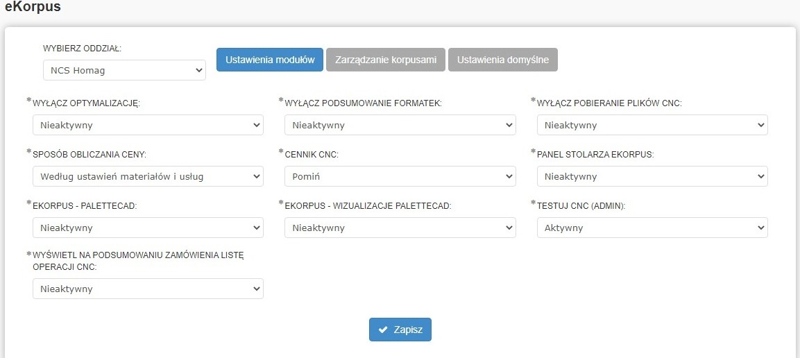 Wyłącz pobieranie plików CNC – Gdy jest aktywne, admin nie ma możliwości pobrania plików zawierających informacje o CNC dla każdej formatki w szczegółach zamówienia.