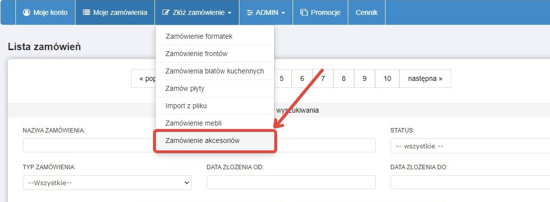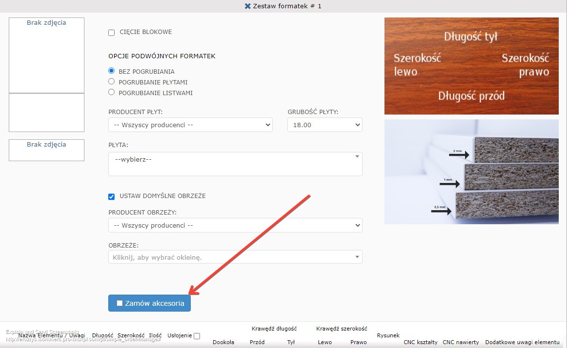 - W trakcie tworzenia zamówienia na formatki, klikając w przycisk 'Zamów akcesoria’