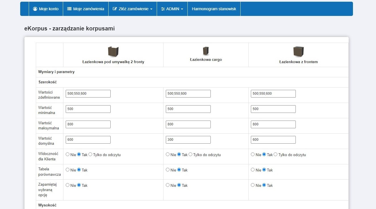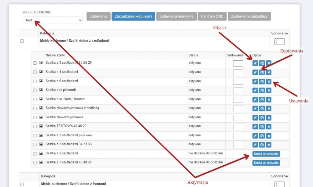 Kopie umożliwią przygotowanie szafek z konkretnymi parametrami i dostępnością ich edycji.