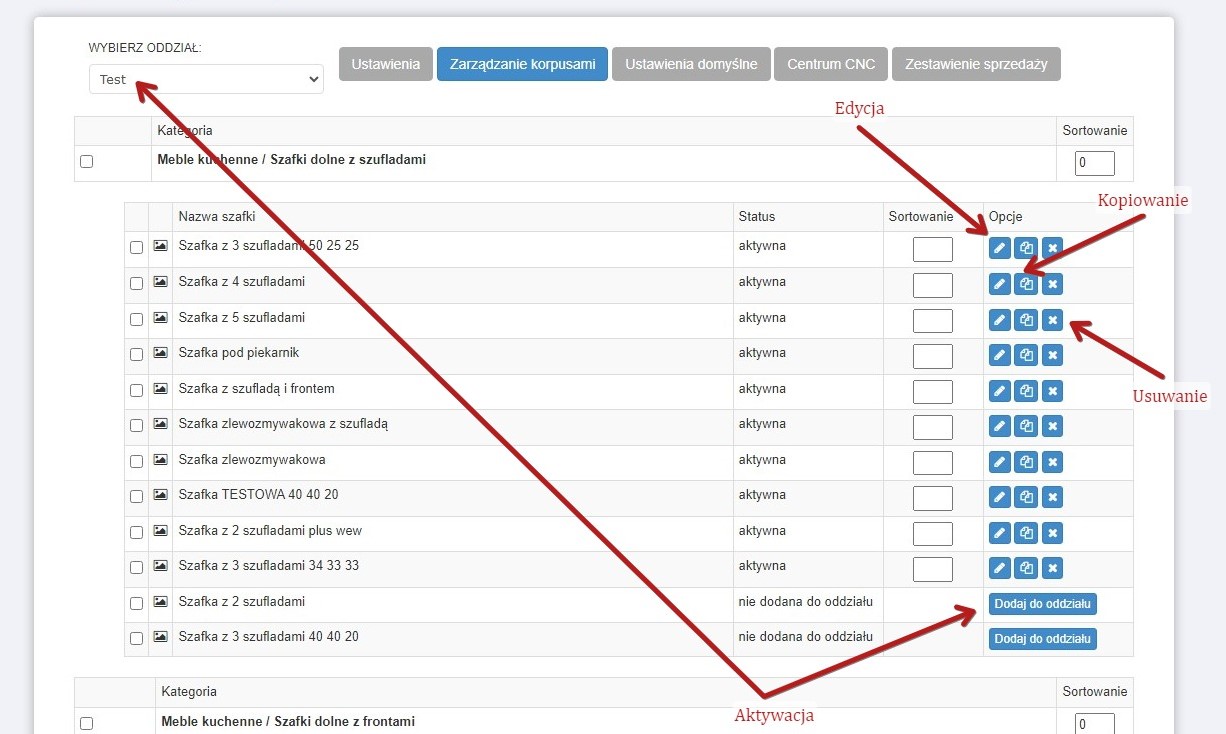 W celu edycji danej szafki należy kliknąć przycisk „Edycja”.