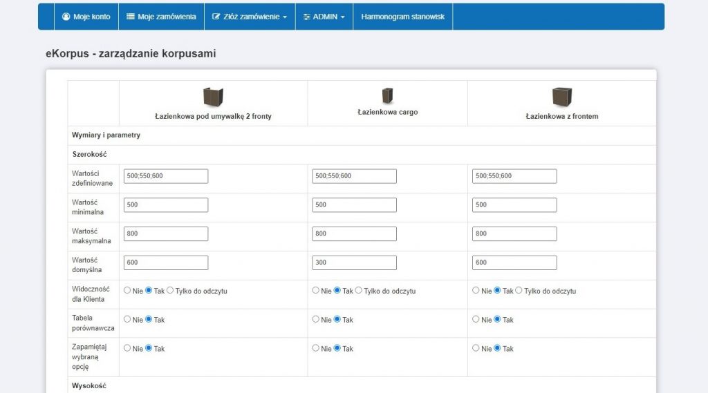 Na wygenerowanej tabeli porównawczej można jednocześnie edytować parametry kilku mebli.